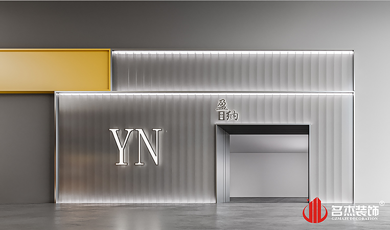整體服裝辦公裝修設計空間的設計風格是采用時尚潮流的元素來進行設計,在門頭空間加入了銀白色的主調,加入了部分黃色作為空間的點綴色,讓空間的點綴有著不一樣的亮眼元素。室內的空間里面在不同的位置里,都加入了類似屏風的元素作為分隔空間的隔斷,傳統要素的加入,也讓空間變得更加有韻味。#廣州辦公室裝修設計公司#