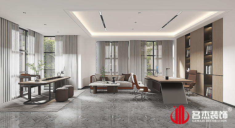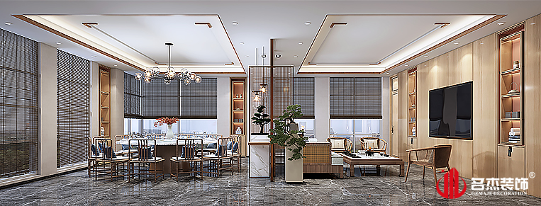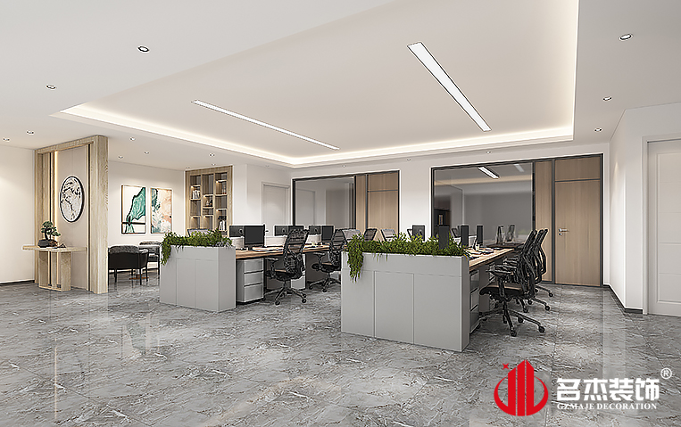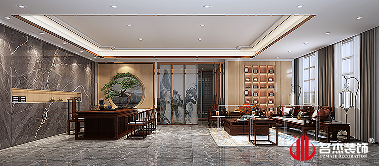 設計師在天花增加了層次起到了很好的區(qū)域劃分作用,從中式元素入手,通過有節(jié)制的極簡設計來賦予空間中式典雅的魅力。辦公區(qū)域多處使用景觀的元素,也使得空間和傳統(tǒng)時尚簡約風格有著不一樣的特色。