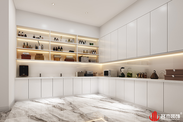 在整體的設計當中,設計團隊以現代奢華的風格來作為這次的主打風格,以金色作為改纖體中心的點綴色,而且不同造型上使用的顏色也是金色,讓空間充滿這一種奢華的感覺。在燈具的使用上也是按照奢華的路線走,水晶吊頂,壁燈,營造出優雅、富麗的氛圍。#美容裝修設計#