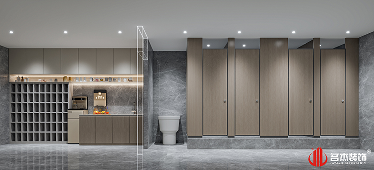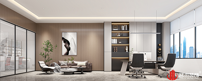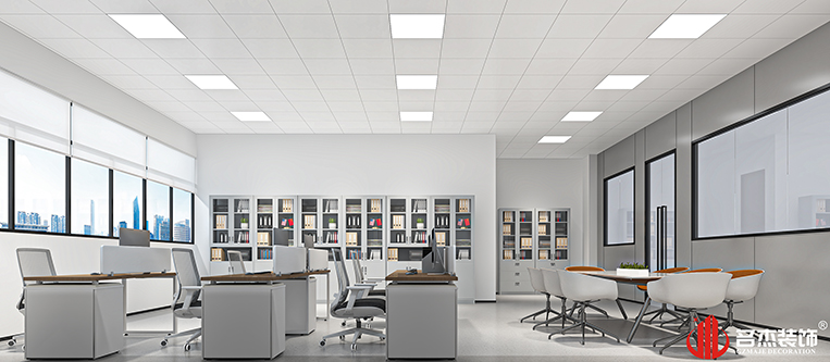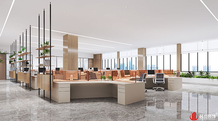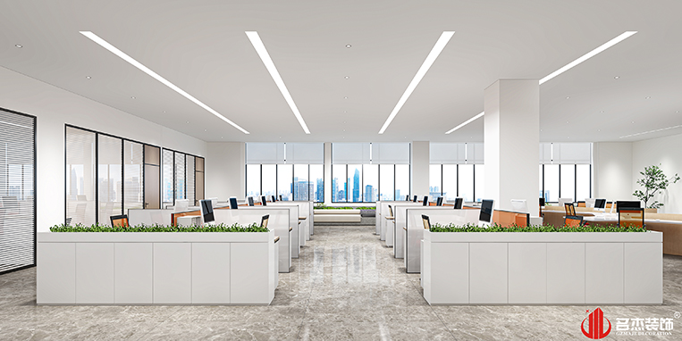 設計團隊在展廳區域使用具有科技元素的藍色,作為該空間的主導色,配合圓弧型的吊頂造型,讓空間具有科技感的同時,還能具有設計層次感。而且前臺區域的設計中,讓企業LOGO色作為空間的點綴色,使用在前臺桌子上,搭配造型感十足的吊頂,讓空間更具有設計層次感。#廣州辦公室裝修#