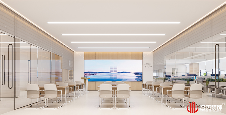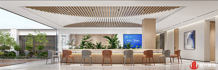 設計團隊在整體辦公室裝修設計空間中多次使用弧形元素,讓空間充滿著更多的設計層次感。同時根據客戶的行業定位,在空間中引入一整顆綠植,讓空間充斥著綠植的元素,也帶來更多大自然的氣息。#廣州辦公室裝修#