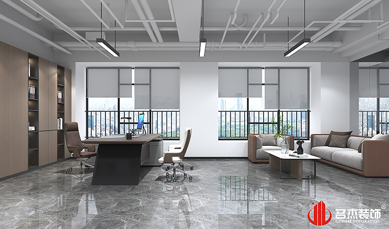 整體的辦公裝修設計空間采用的是時尚簡約風格,大量的使用logo色讓空間不再單調的同時,還能增加整體空間的設計層次感。采用弧形玻璃隔斷為的就是增加設計的設計感,也讓空間綻放出不一樣的設計感。