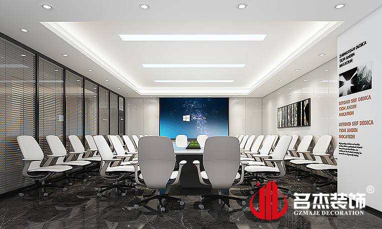 設計團隊以現代簡約的設計手法,重新打造了一個新型辦公室裝修設計空間。由于該企業的辦公室裝修設計空間的樓層是足夠高,因此在前臺設計上,通過加入一個圓弧形的樓梯來連接兩個樓層,設計感滿滿的。同時采用簡約的吊頂造型,配以原木色的元素,顯示出簡約而不簡單的設計風格。