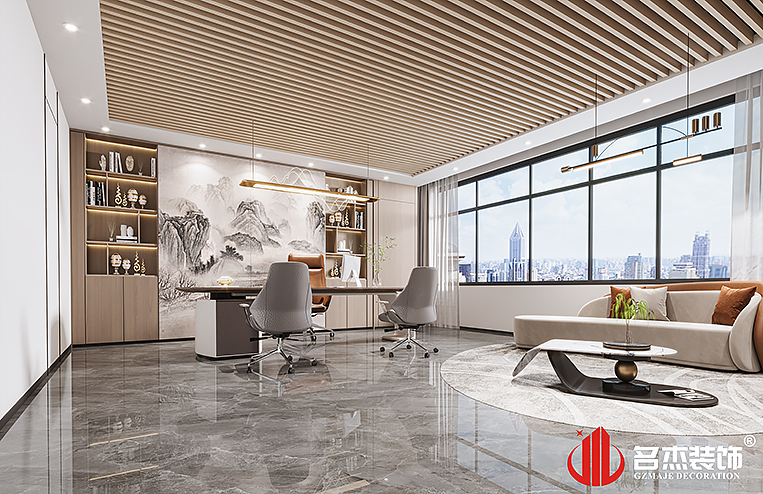 前廳區域采用企業的logo色系來作為點綴的色調,加上一點弧形元素來作為空間的點睛設計手法,同時搭配圓形吊頂,讓整體空間變得更加有趣。其他辦公裝修設計空間區域采用的是時尚簡約的風格去搭建,讓簡約的元素能夠進入到每一個角落當中,更好的展示企業的氛圍。