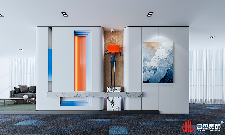 設計團隊采用的時尚簡約的設計風格作為這次的主打風格,將企業的LOGO——藍色融入到整體設計當中,企業文化也能夠很好地在整個辦公室裝修設計空間展開,讓員工和來訪的客戶感受到來自企業文化的沖擊。天花吊頂上使用撞色的設計,讓空間中有著不一樣的特色,區別于傳統的辦公裝修設計空間,成就屬于他們自己專屬的辦公室裝修設計空間。#廣州辦公室裝修設計#