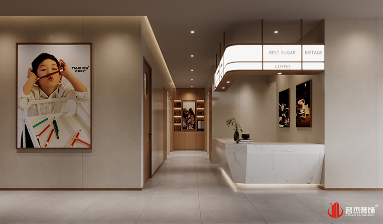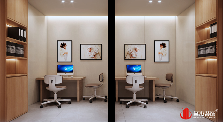 設計團隊在前臺區域使用比以往更多的圓弧形元素來作為辦公室裝修設計空間的主打設計要素,來避免孩子們碰傷的可能性,這樣的做法也是能夠讓空間的設計感更加強烈。家具的選擇上面也是選擇較為百搭的白色和原木色作為主要方向,呼應空間的同時,還能夠增加空間的設計層次感。而其他區域則是選擇較為常規的做法,通過對材質的選擇,打造出不同以往的設計風格。整體空間給人的感覺就是舒適,簡約而不簡單,同時也能夠符合兒童攝影的定位。